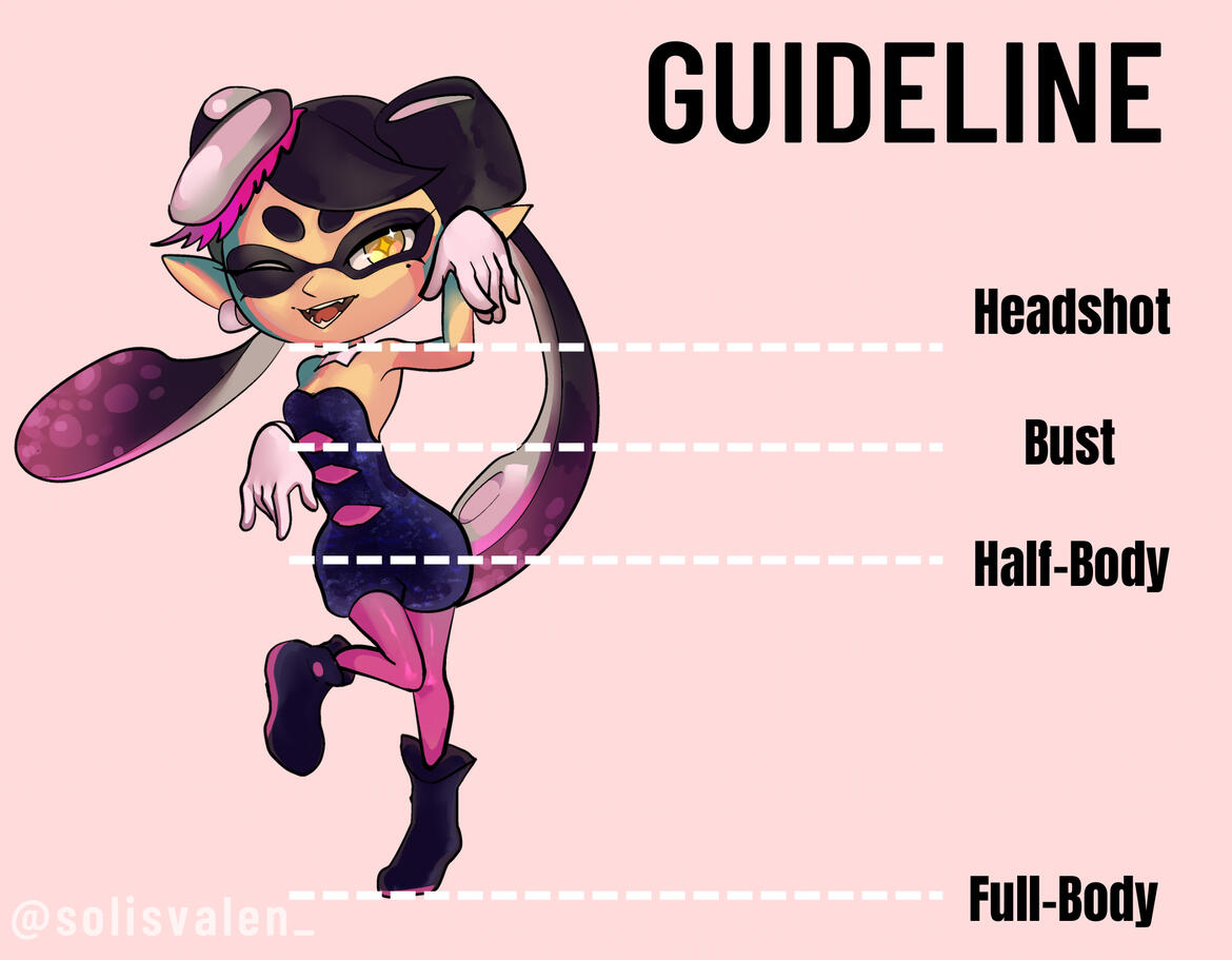 Commission prices vary on complexity and how much of the body of the subject is shown. Please refer to the visual guide above!